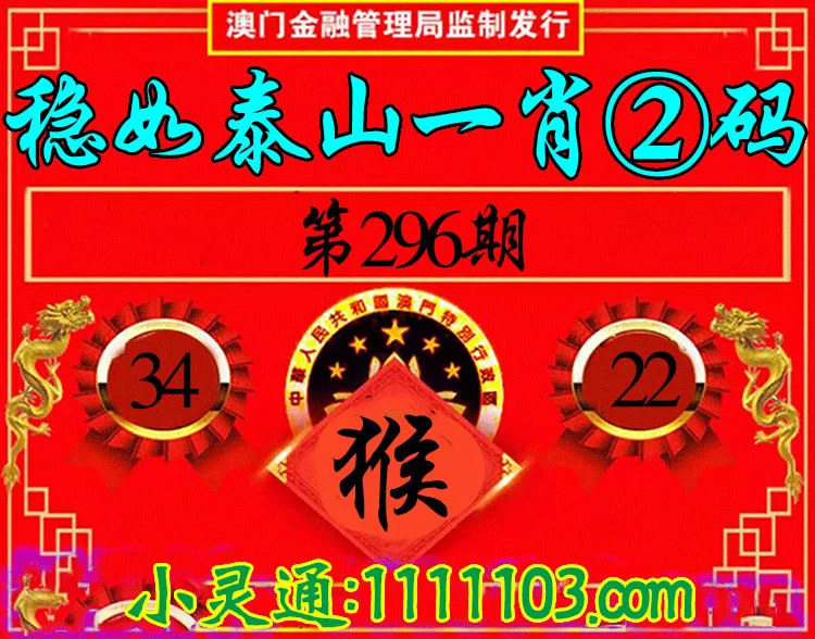 296期:✨稳如泰山✨【一肖2码】【猴|34,22】开:猴22 准