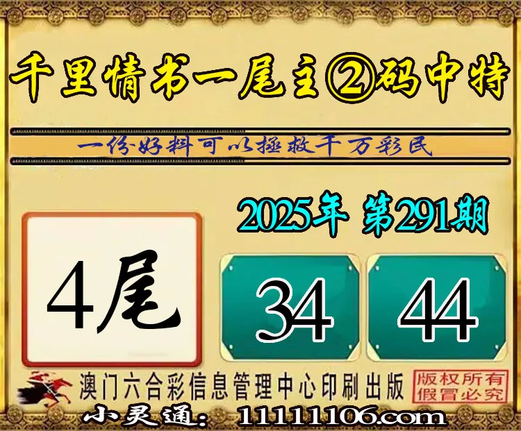 291期:✨千里情书✨【一尾二码】【4尾主:34,44】开:狗44 准