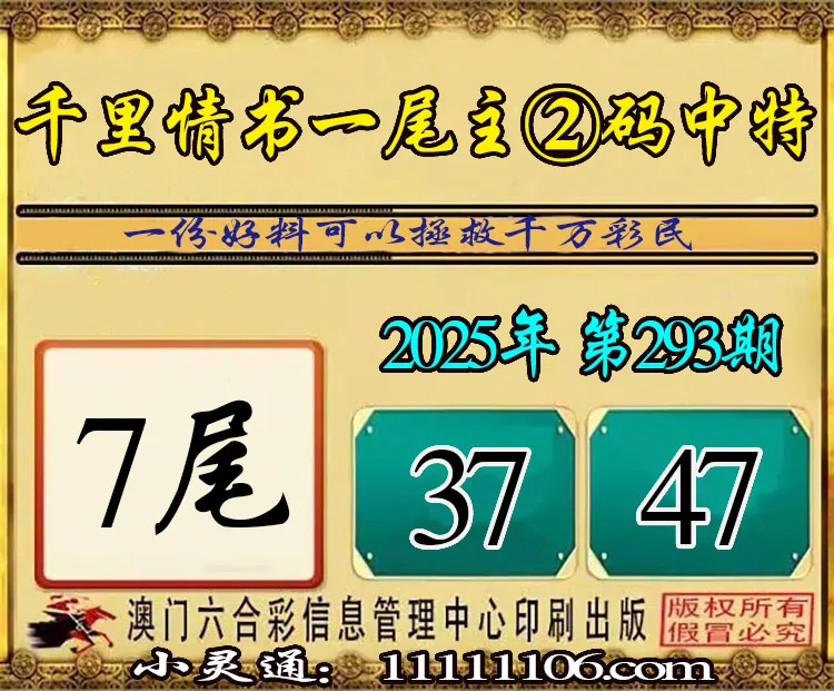 293期:✨千里情书✨【一尾二码】【7尾主:37,47】开:羊47 准