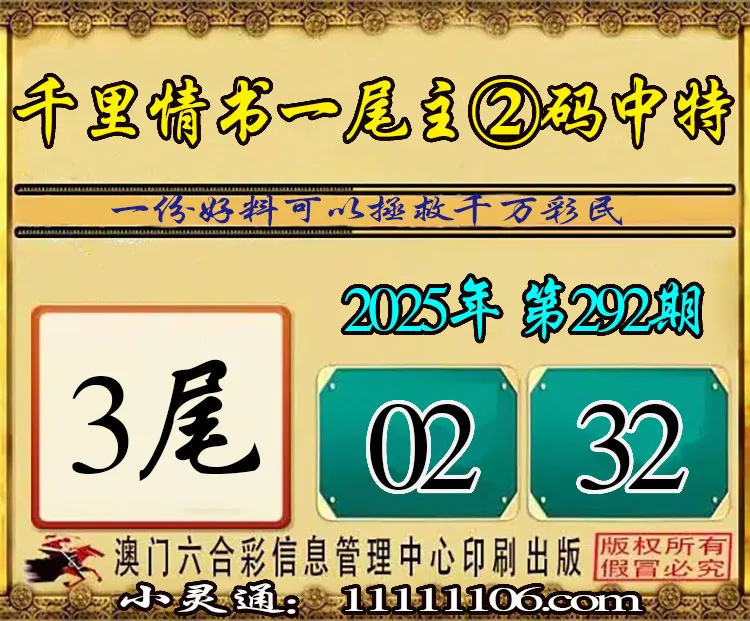 292期:✨千里情书✨【一尾二码】【2尾主:02,32】开:龙02 准