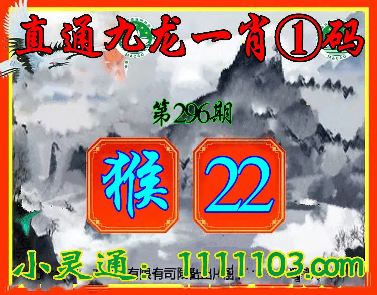 296期:✨直通九龙✨【一肖1码】【|22】开:猴22