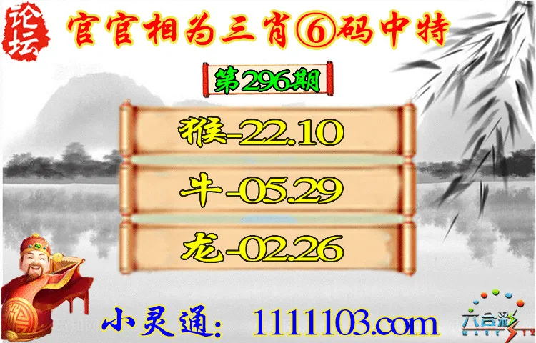296期:✨官官相为✨【三肖6码】【猴,牛,龙|22,10,05,29,02,26】开:猴22 准