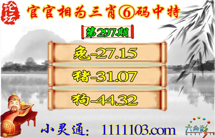 297期:✨官官相为✨【三肖6码】【兔,猪,狗|27,15,31,07,44,32】开:狗44 准